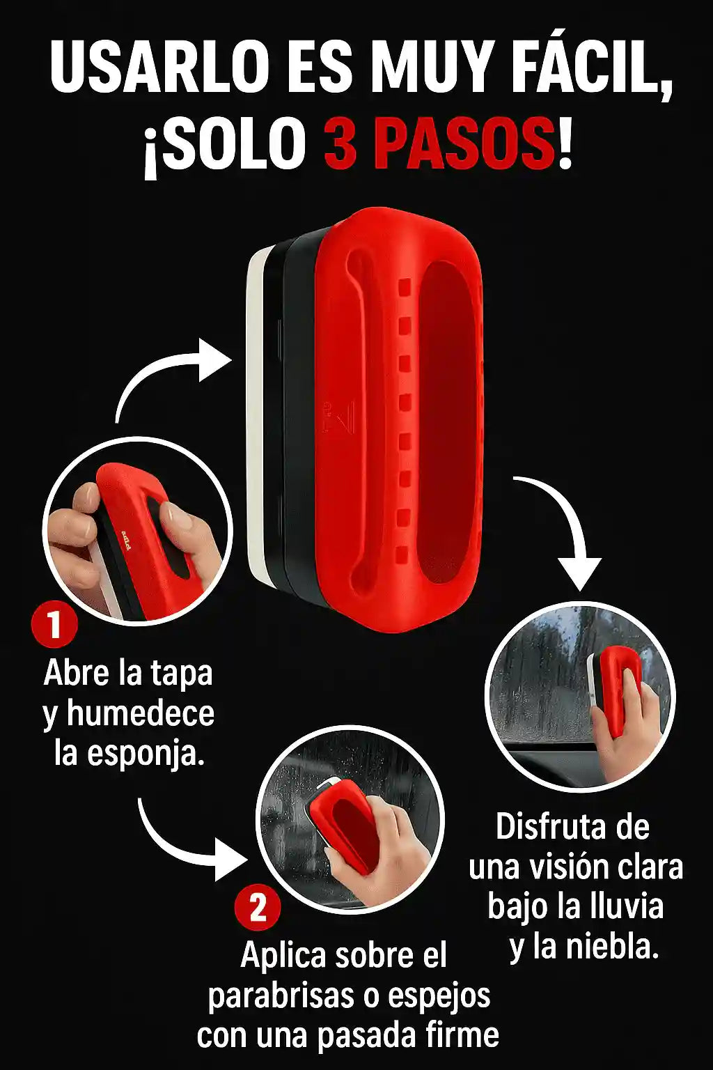 Descubre nuestro CEPILLO ANTIEMPAÑANTE que crea una capa hidrofóbica sobre el vidrio, bloqueando la lluvia y evitando el empañamiento y asi brindarte una visbilidad segura