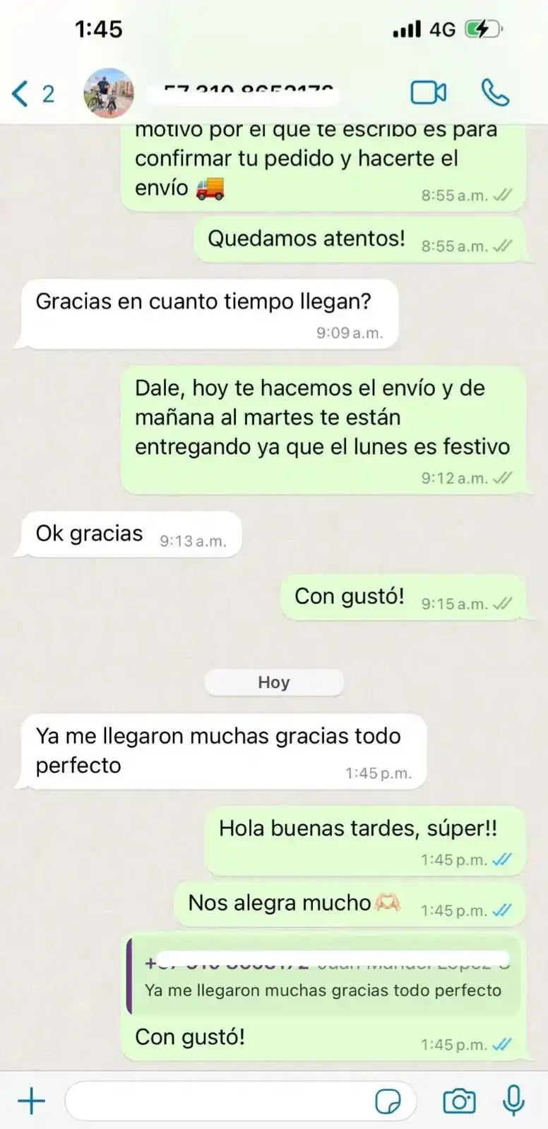 ➡️ Se te envia via whatsapp tu # de guia